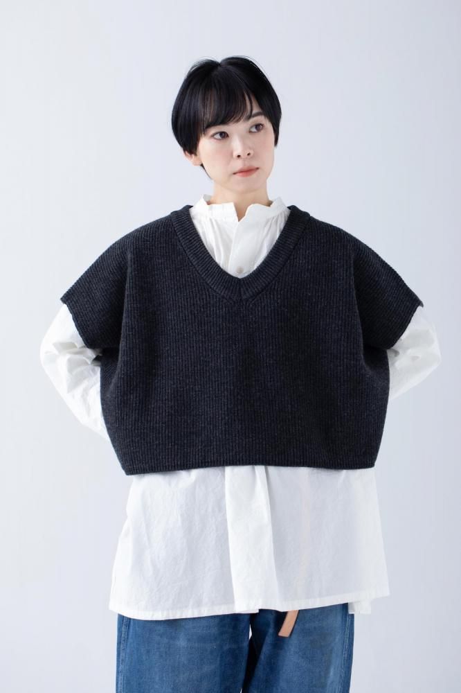 ・軽くて膨らみのあるメリノウールの畦編みニットベスト